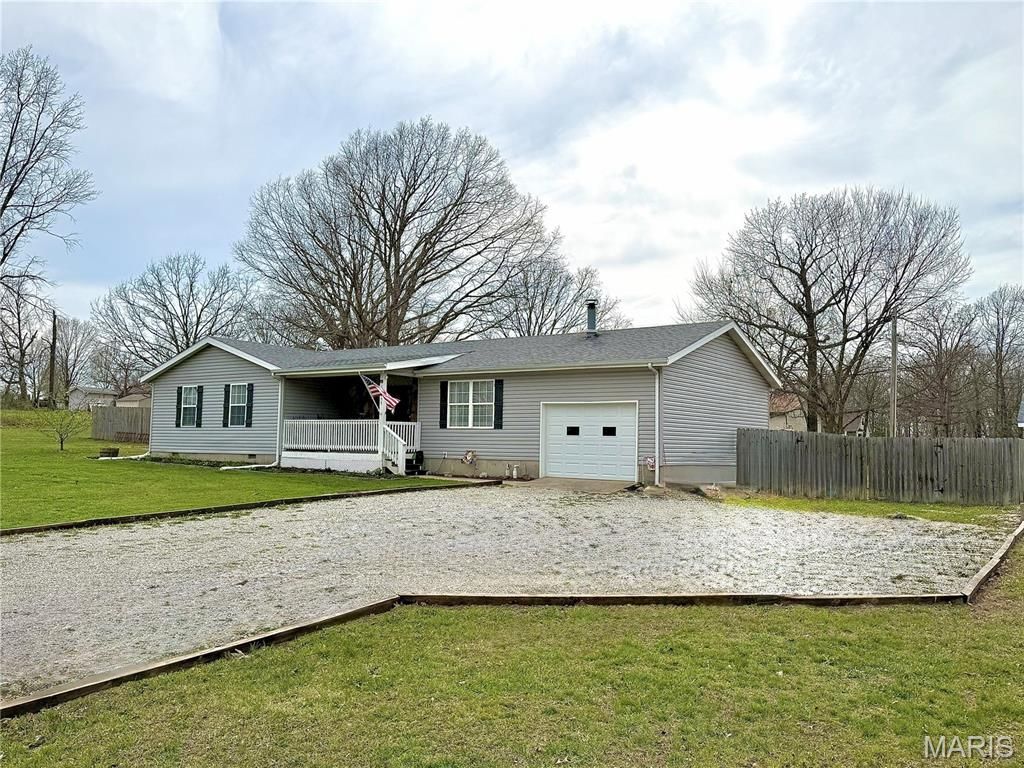 Beautiful 3-bed, 2-bath ranch with 1,516 sq ft, an attached 1-car garage, on a 1-acre lot. Highlights include an open floorplan, cozy wood-burning fireplace, and a kitchen with stainless steel appliances only 2 years old. Washer and dryer, also just 2 years old, are included. The master bathroom has been completely remodeled, adding a fresh, modern touch. The crawl space has been fully encapsulated and includes a dehumidifier for added protection. Outdoor amenities include a covered front porch, covered back deck, privacy-fenced back yard, storage shed with a concrete floor, and an expanded driveway with a new culvert installed. Established garden beds provide plenty of outdoor enjoyment. Located just minutes from the Fort Leonard Wood South Gate, this home offers perfect quiet country living.