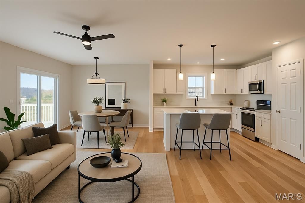 Looking for a fresh start without the hassle of updating an older home? This brand-new home delivers the perfect blend of modern style, smart layout, and low-maintenance living.The main level is designed for everyday comfort with two spacious bedrooms (or a primary and main floor office). This open-concept layout feels bright, functional, and easy to live in. The kitchen features sleek modern finishes, quartz countertops, island with overhang for seating - ideal for everything from weeknight dinners to hosting family.Downstairs, the finished lower level adds the flexibility you need with a third bedroom, full bath, and a generous rec room - perfect for a guest space, a private retreat for teenagers and friends, or a second living area for movie nights and game days.The three-car garage gives you room for vehicles, hobbies, or extra storage - something you'll appreciate every single day.If you're ready for a home that fits your life now-and not one you have to fix up to get there-this is it.Located in the highly sought-after Stone Bridge community in Washington, Missouri, this home offers the perfect combination of new construction feel, scenic surroundings, and everyday convenience. Stone Bridge is quickly becoming one of the most desirable neighborhoods in Washington thanks to its peaceful setting, beautiful views, and close proximity to everything buyers want.Just minutes from the vibrant downtown Washington area and the scenic Missouri River, you'll enjoy easy access to local restaurants, coffee shops, boutiques, and year-round community events. Outdoor living is a major highlight, with nearby parks, playgrounds, and walking trails including Phoenix Park - a local favorite featuring pickleball courts, paved trails, and wide-open green space.Washington, MO continues to attract buyers for its affordability, strong schools, small-town charm, and convenient access to St. Louis, making it one of the best places to buy a home in Franklin County. Whether you're upsizing, relocating, or looking for a better lifestyle, this location delivers long-term value and daily enjoyment.If you're searching for a home in Washington, Missouri, Stone Bridge by Northern Star Homes offers a great location, outdoor lifestyle, and strong community feel. Northern Star Homes has a variety of new home plans to suit your budget and style. Visit today and plan on staying!Northern Star Homes - WashMo's hometown builder.