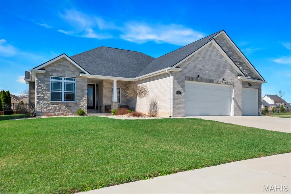 Welcome to 1619 Oglesby in Edwardsville, IL-a beautifully designed 4 bedroom, 3 bathroom home featuring a sought after split bedroom floor plan, open-concept living, and a finished basement. Situated in the heart of Edwardsville, this home combines functional design, spacious living, and modern conveniences-perfect for today's buyers searching for move-in ready homes in Edwardsville.Step inside to a bright, open floor plan with a welcoming living room centered around a cozy fireplace. It seamlessly connects to the dining area and kitchen, ideal for entertaining and everyday living. The kitchen is a standout feature, offering a double oven, expansive walk-in pantry, and a large butler's pantry with extensive storage and prep space. The private primary suite is thoughtfully positioned and offers a true retreat with a spacious bedroom, dedicated sitting area, walk-in closet with custom organization. The spa-like en suite bathroom features a large walk-in shower (marble), separate soaking tub, and split double vanity. Head downstairs to the finished basement providing additional living space and flexibility. Including a fourth bedroom, full bathroom, office space, workout area, large family room with additional refrigerator and microwave, and ample storage. Don't miss this beautiful, move-in ready home...call your favorite realtor to get your private showing scheduled!
